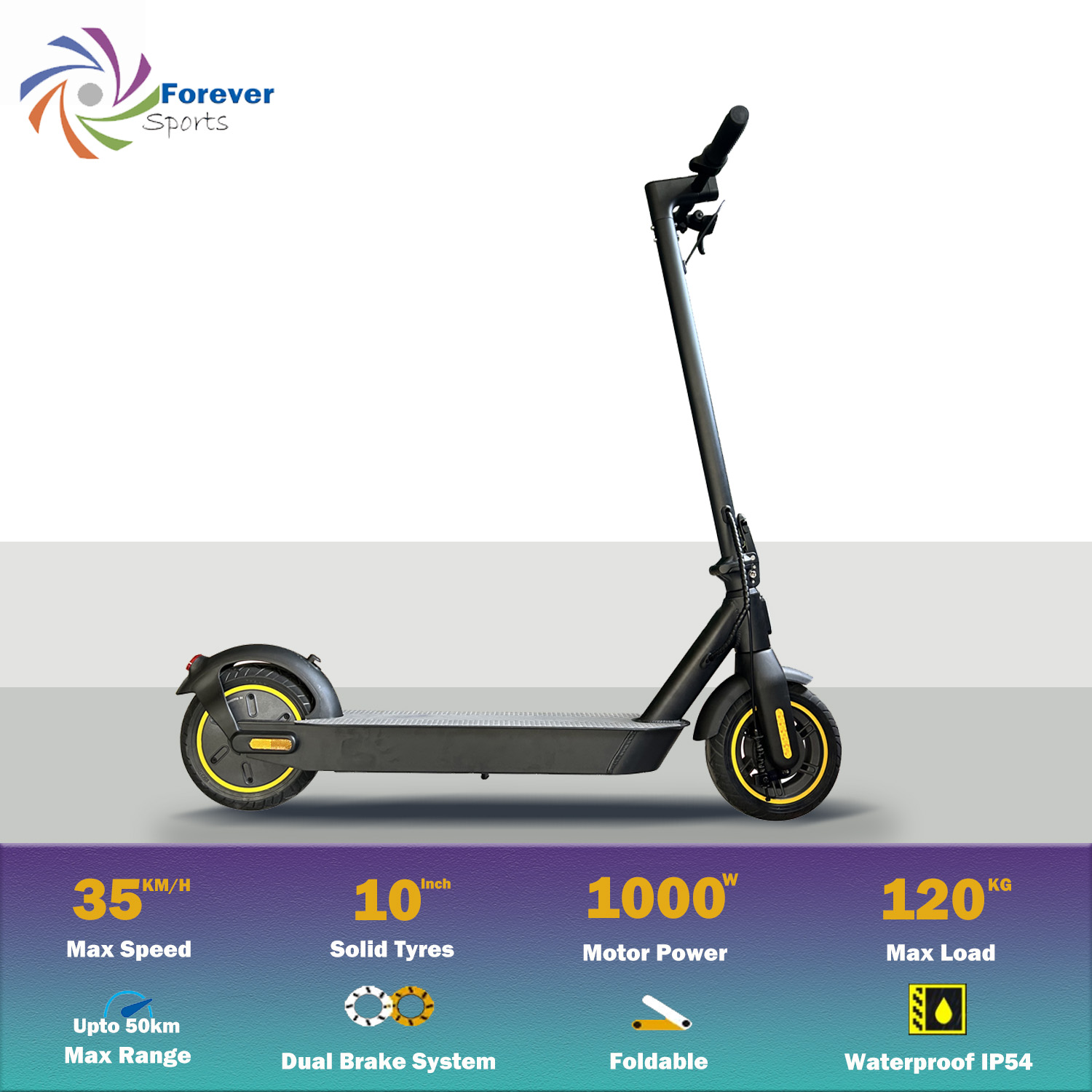 E9G-MAX Electric Scooter, 10-inch solid rubber tyres, never flat, 15AH lithium battery, foldable scooter with 1 year warranty