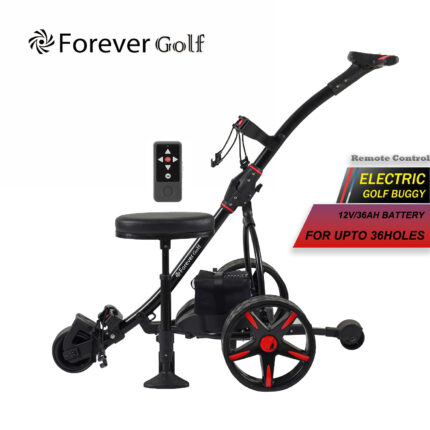 Lithium Battery Remote Control Electric Golf Trolley with a seat, Sand bucket holder, phone holder Golf Buggy-Black Frame+Red Wheels