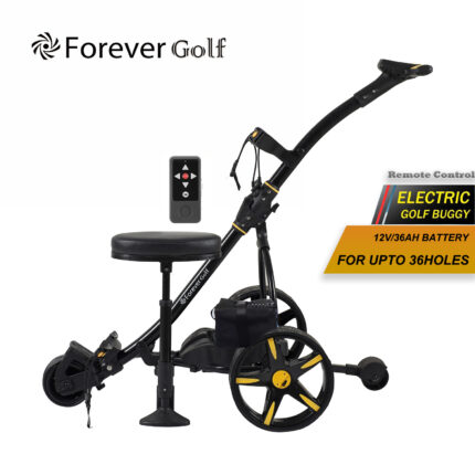 All in one Remote Control Dual Motors Electric Golf Trolley with a seat, Sand bucket holder, phone holder Golf Buggy-Black Frame+Yellow Wheels